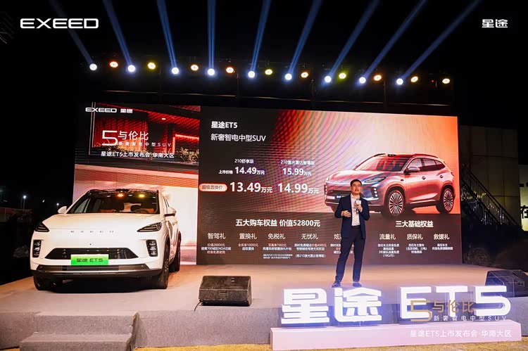 当科技新豪华邂逅华南潮流基因,一场颠覆15万级智电市场的出行革命正式启幕!12月7日, 星途ET5(参数|询价)华南大区上市发布会在粤港澳大湾区核心枢纽重磅登场,这款“新奢智电中型 SUV”携210舒享版、210激光雷达智尊版两款明星配置而来,官方指导价14.49 万元-15.99万元,华南专属超级置换价低至13.49万元-14.99万元,叠加猎鹰 700 城区NOA终身免费使用权、价值52800元五大购车权益+三大基础权益,以满格诚意对话华南用户,重新定义中端智电SUV的价值天花板。
