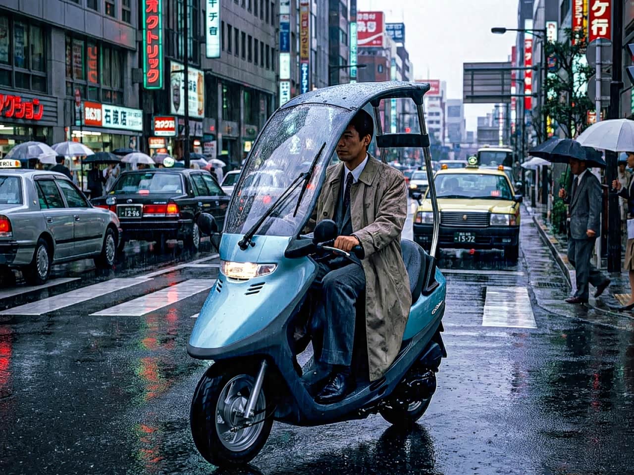 90年代脑洞!带雨刷顶棚两轮通勤神作