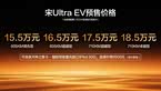 比亚迪王朝B级闪充SUV 宋Ultra EV正式预售,预售价15.5-18.5万元,订车享18个月免费闪充,3月底上市。全系标配第二代刀片电池+闪充:5分钟10%-70%,9分钟从10%-97%,-30℃低温仅多3分钟,续航最高710km,可选激光雷达,搭载天神之眼 5.0,城区智驾、极窄泊车更从容。270kW动力,2840mm轴距,标配云辇-C、TBC 爆胎稳行等功能。六种外观+两款内饰,女王副驾、座椅通风加热按摩、15.6英寸大屏等20+项配置全系标配。