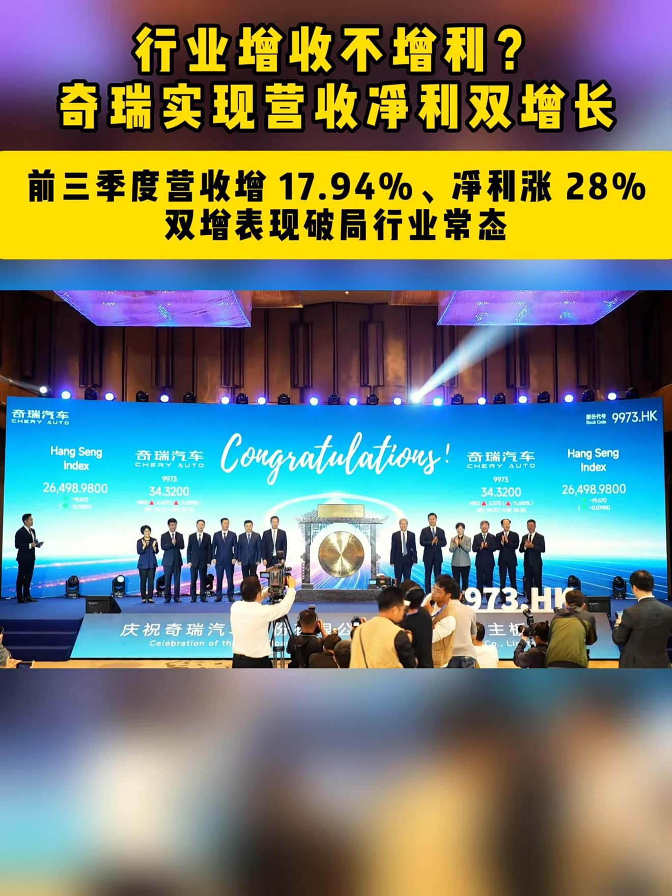 奇瑞实现营收净利润双增长
