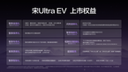 有的流量新车在价格发布会后,会声嘶力竭的喊“送静谧座舱”这种话术。很多普通人不知道这种话术问题在哪儿。 一般企业新车上市,公布的“权益”,不会这么虚、干货还是有的。 比亚迪宋Ultra EV上市,价格是15.19万起,它的这个权益比较虚的是“送3年3次基础保养”,先不看小字。纯电车型的基础保养,基本都是“目视检查”,也就是底盘升起来看看、看看油液是不是合理区间,这种不涉及到很多钱、很多成本。 有的权益就是真金白银,比如置换补贴5000元(本品)、4000元(其他品牌)。 送免费充电权益12个月,之前预售时是送18个月,虽然一般人一年跑不了多少公里,这个权益也没有很大成本,但确实也是送钱。 相对流量网红车企来说,BYD等吹自己的能力还是保守一些。 具体到比亚迪宋Ultra EV,亮点就是“二代刀片和闪充”,买车时和同级车型对比,这也是它的亮点。但是,要记住,如果你家里充电条件不错、附近充电桩比较多,这一点对你来说也不算根本性原因。 这款车配置水平已经很不错,605km超越型甚至有“预瞄”功能,选装带激光雷达、城市NOA需要9900元。 比亚迪今年的新车,不会像之前那样,一味的降低价格了,现在靠技术优势和配置水平,提升竞争力的趋势更明显。