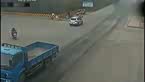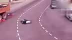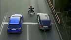 摩托车大哥真把马路当成赛车道了,撞到小车甩出这么远!