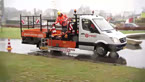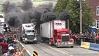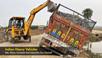 卡车陷在路边随时翻车,反铲装载机一铲子就扒了过来,力量真强大