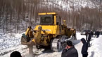 卡车被困在雪地上动不了,履带式推土机来救援,老司机经验很丰富