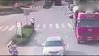 出租车转弯速度太快,监控拍下令人揪心一幕