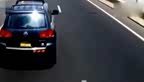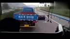 大货车掉落东西,正常行驶的小车躺着中了枪!