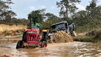 水稻丰收,农民们开着手扶式拖拉机在田间运送粮食