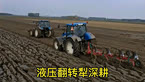 拖拉机牵引液压翻转犁在泥土地上深耕,需要强劲的动力才行!