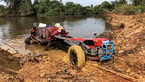 下河取水的手扶式拖拉机没有绞盘,一样也可以想到办法应对打滑!