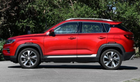 长安CS35 PLUS侧身看上去比较饱满,在侧面的双腰线当中,上腰线比较流畅,略微悬浮车顶搭配车顶行李架,可以看出该车的运动气息很足,轮眉处还采用了黑色饰条装饰,非常精致。