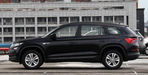 柯迪亚克。从侧面看,采用双平行线的设计,微微向后延伸,双拼色后视镜设计感十足,银色镀铬饰条包裹车窗,门把手与车门采用同色系的设计,非常具有整合性。轮胎采用花瓣熏黑式设计,车顶行李架的设计充分展现车子的运动感。