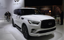 外观方面,英菲尼迪QX80气势非常强,宽超2米,家族式前脸设计让人眼前一亮,超大尺寸中网像一个盾牌,给人安全踏实的既视感。内部菱形网格状进气造型凸显出的运动感非常到位,四周使用镀铬饰条装饰,精致之余尽显硬汉本色,两侧的大灯造型犀利、凶狠,内部光源都使用了LED光源,随动转向大灯别具一格,十分先进。下包围的尺寸也够大,厚重感极强,并且还使用格栅造型和镀铬饰条进行强化它的肌肉感和野性。