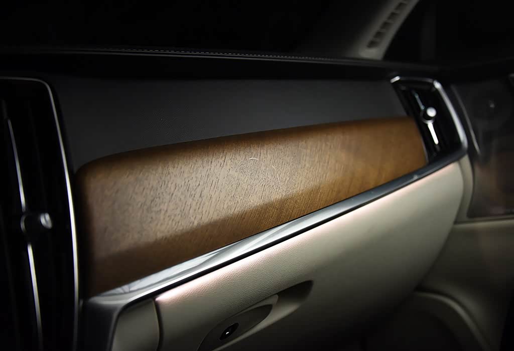 车内一眼清新,淡雅的浅色内饰配哑光木纹透着北欧人对自然的延续,摸上去面板纹理滑滑的,完全不刻意去做涂层,特别真实!中央杯架区的木质卷帘板一定要多留意,是小心思,也是精工细雕的体现,这就是沃尔沃S90的档次感和风格:细节自然、善于内秀。