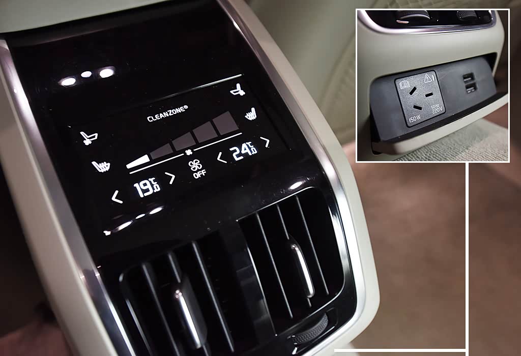 后排空间大可放心,国产版S90加长的120mm已经派上用场,在竞品当中也算实力派,有机会得比试比试。舒适性嘛还不错,配置也到位,三面自动遮阳帘、后部双驱空调、电源接口、大中央扶手都体现着实用性与豪华感。只是如果我的话,一定会买深色内饰,现在的太不禁脏。