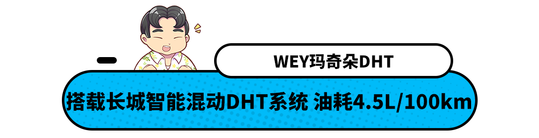 玛奇朵自身搭载的是1.5L+DHT混动系统,其中发动机采用的是1.5L阿特金森循环发动机,最大功率97马力,最大扭矩125牛·米;电动机最大功率156马力,最大扭矩250牛·米;系统综合功率为190马力,综合扭矩为370牛·米,传动系统两档DHT变速箱,NEDC综合油耗为4.7L/100km,用户反馈真实油耗为4.5-5.5L/100km之间。