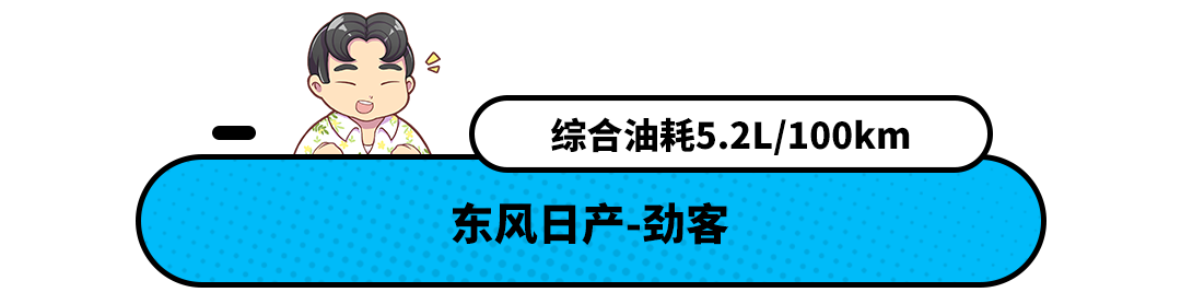日产劲客搭载一台1.5升四缸发动机,最大功率122马力,最大扭矩142牛·米,传动系统品牌可模拟六档的CVT无级变速箱,参数虽然很一般,这非常符合这款车经济性取向的定位。同时该车整备质量还不到1.2吨,NEDC综合油耗仅为5.6L/100km,这在纯燃油SUV里面属于很优秀的表现了。而根据用户和媒体实测来看,这款车最低油耗仅为5.2L/100km,这也是其上榜的原因。