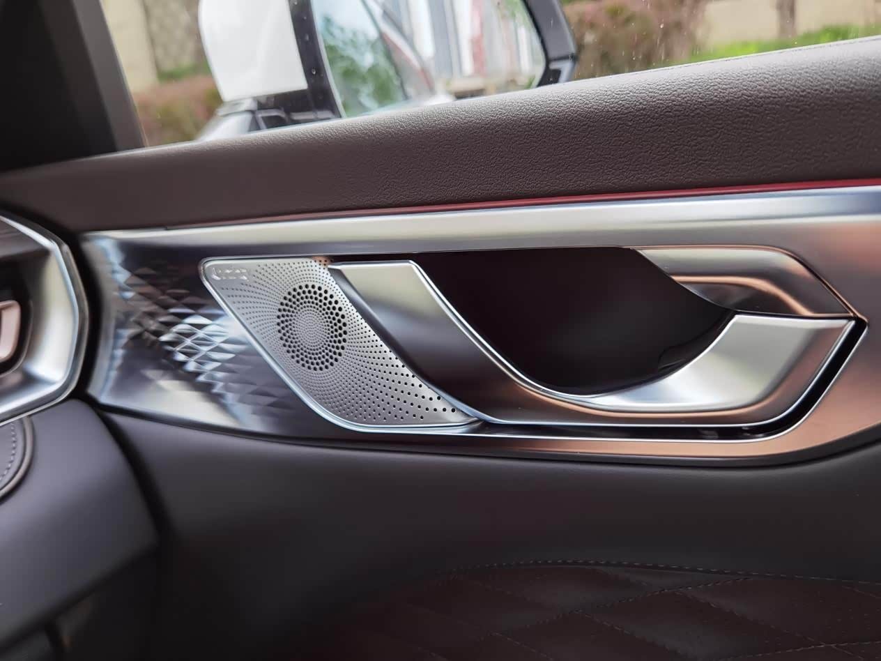 在每个车门的内侧都安置有音响系统,而且是国际的大品牌,音质杠杠滴!音箱的造型设计也是十分的充满艺术感!