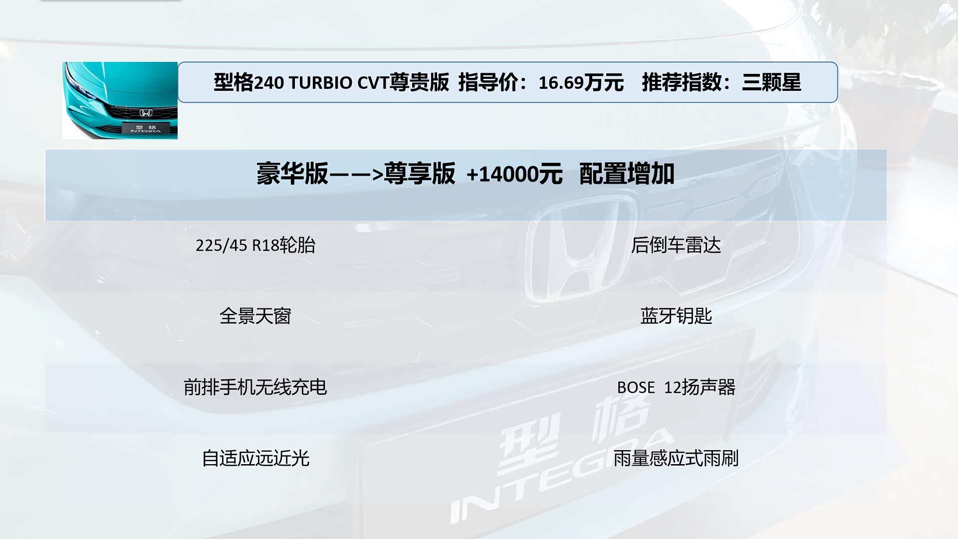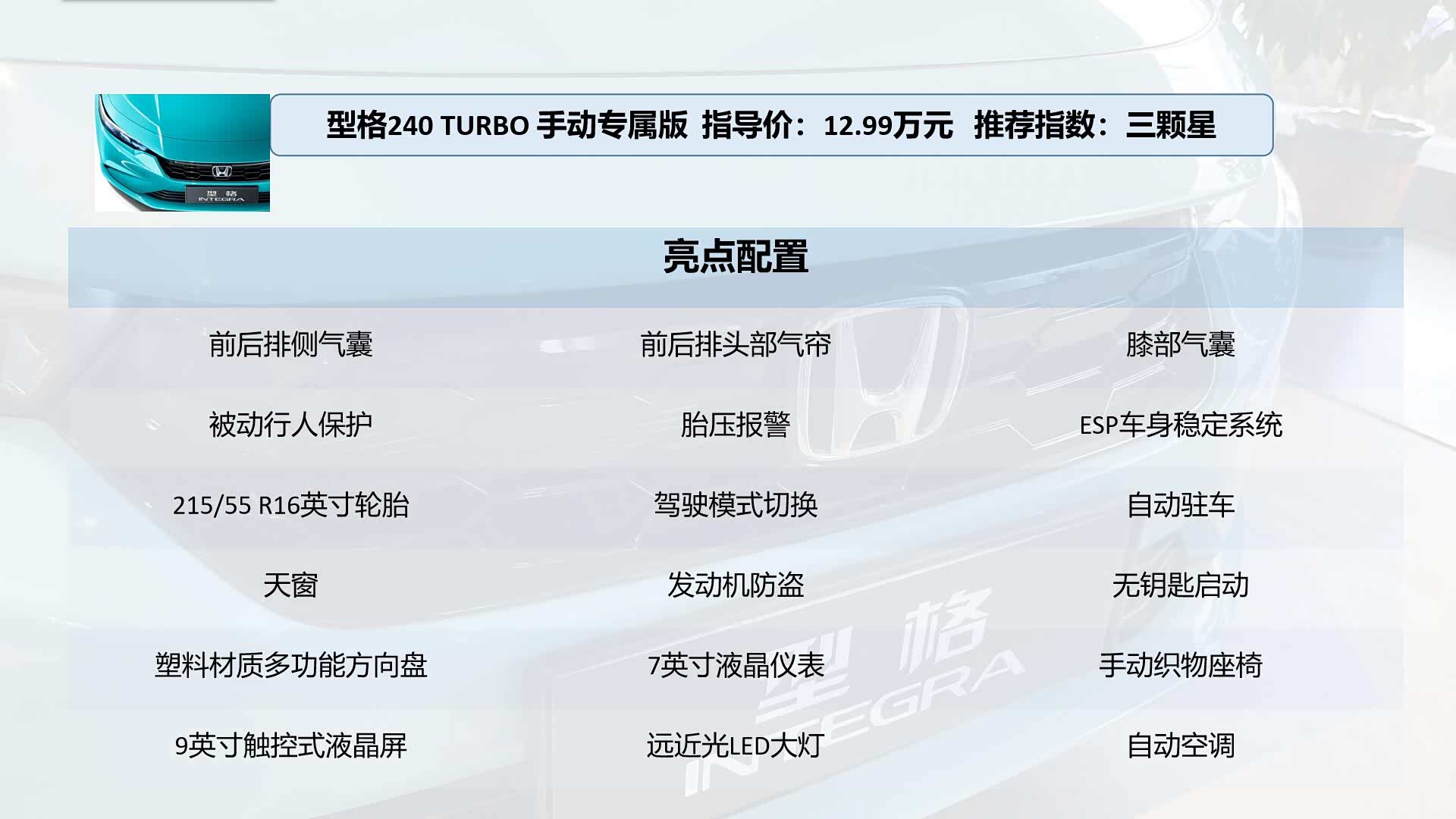 1、型格 240 TURBO 手动专属版 指导价:12.99万元 推荐指数:三颗星