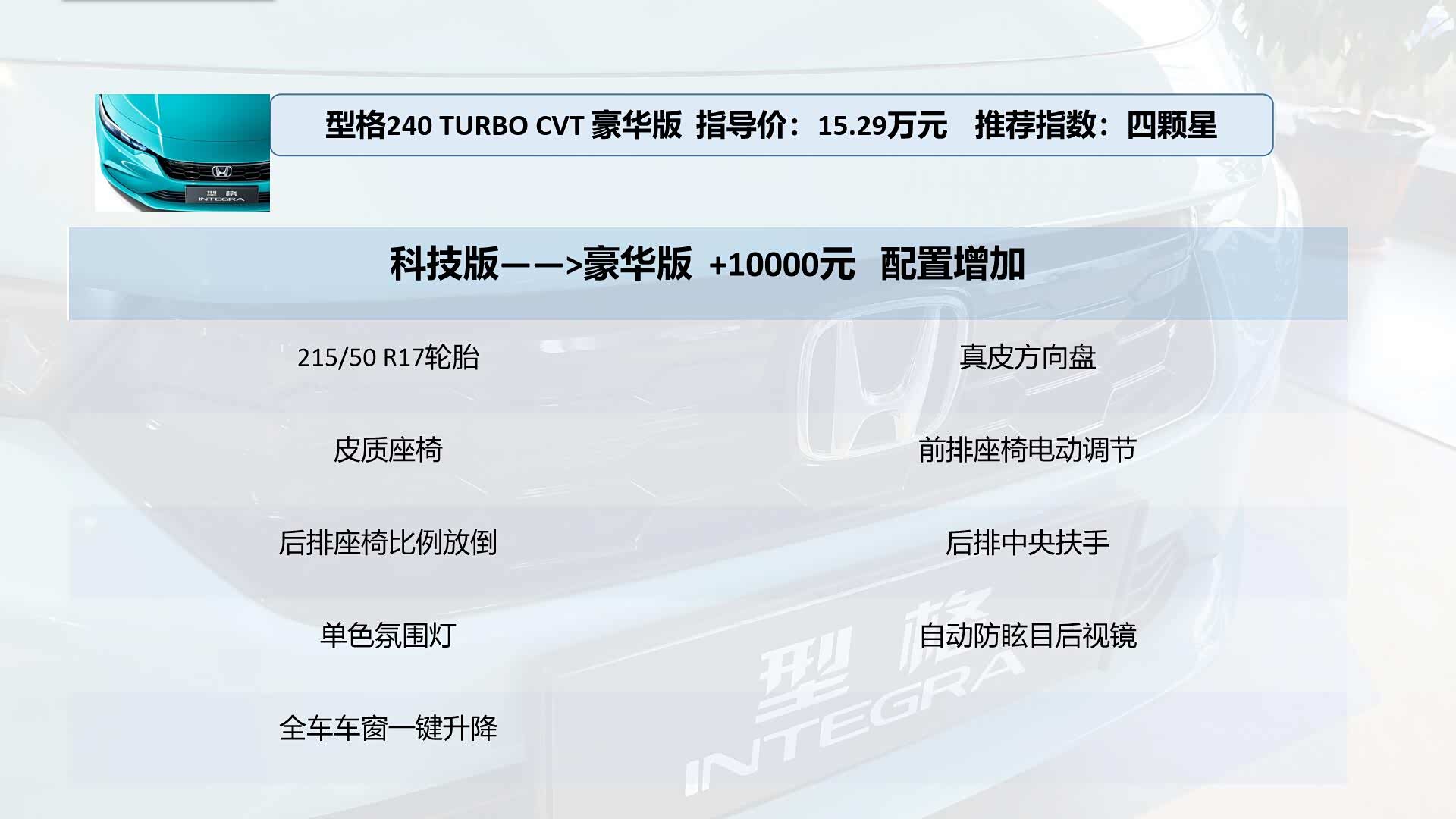 3、型格 240 TURBO CVT 豪华版 指导价:15.29万元 推荐指数:四颗星