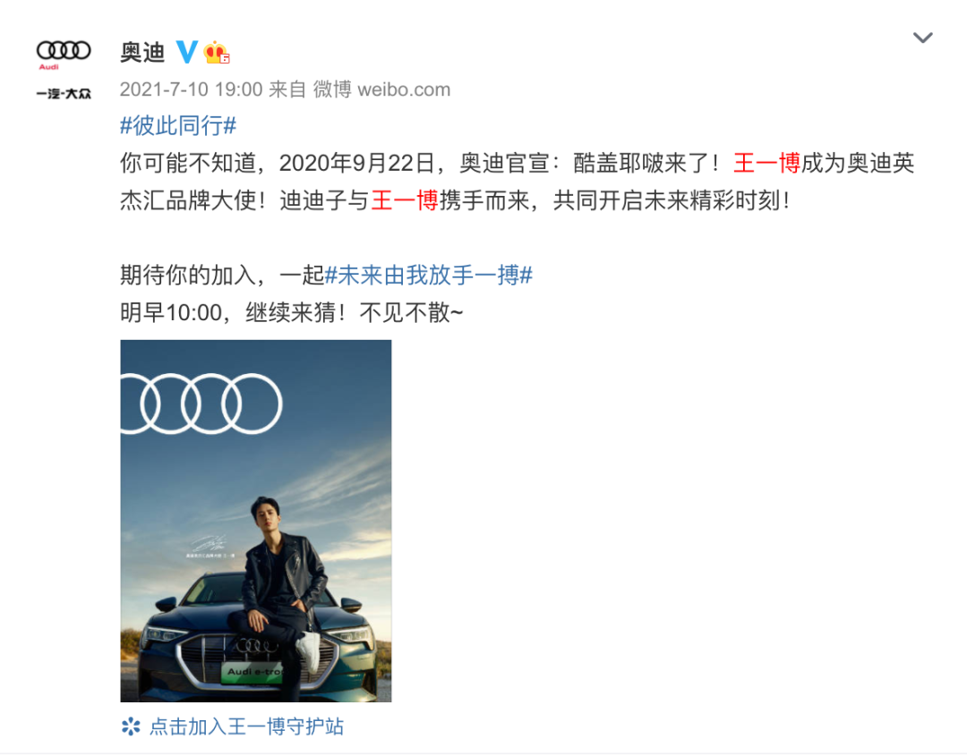 值得一提的是,一汽-奥迪品牌代言人则是王一博,与肖战是同事关系。