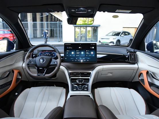 新款车型内饰的变动较大,全新的设计风格使得整个内饰的科技感和运动感有显著提升。车内配备8.8英寸的悬浮式液晶仪表盘以及大尺寸的悬浮式液晶中控屏,整体看上去科技感非常足。而且新车新增了麒麟棕+苍穹灰的内饰配色,能够提升整个车内的视觉空间感受。此外,内饰大多数部位都使用了软性材料,整体的手感和触感都不错。
