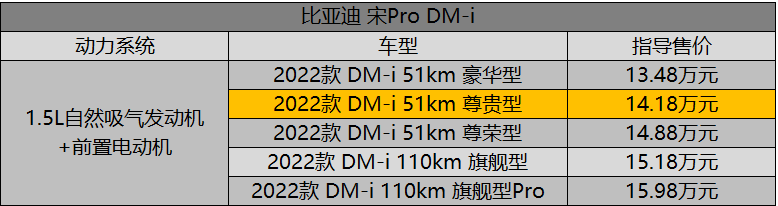从2022款比亚迪-宋Pro DM-i的外观、内饰、配置、空间以及动力等方面来看,这款车的综合表现非常突出,尤其是在13.48~15.98万这个价位区间,具有非常明显的产品力优势。不过综合各款车型的配置来看,还是2022款 DM-i 51km 尊贵型最值得购买。