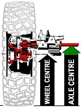 乌尼莫克的成功源于独树一帜的结构设计所带来的强大性能,其中最让人津津乐道的就是名为Portal Gear(门式车桥)的技术,这种设计使得轮轴和传动轴的位置高于车轮中心点,从而为乌尼莫克带来了远远超越一般轮式车辆的离地距离和杰出的通过性。现代的乌尼莫克U4000系列能垂直越障400mm,拥有490mm的离地间隙。而柔性车架的使用使得车辆在崎岖道路上悬挂行程用尽的情况下依旧能保持车身的水平(下图为乌尼莫克的门式车桥)。