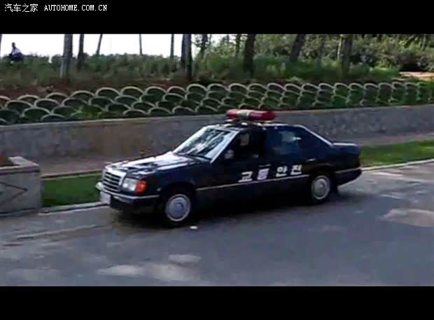 在平壤郊区公路录像抓取到的W124警车。为了尽可能不错过有趣的车,我在旅游巴士上开启了全程录像,可惜画面不清晰。