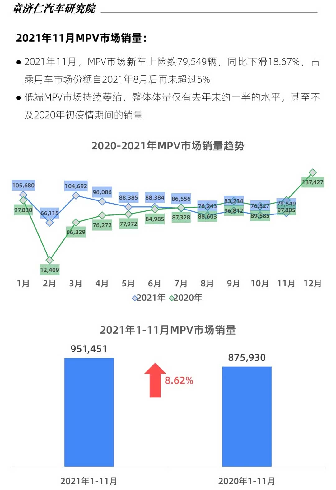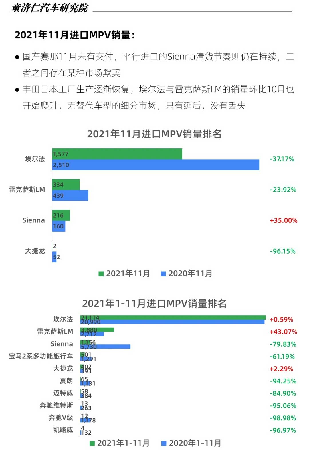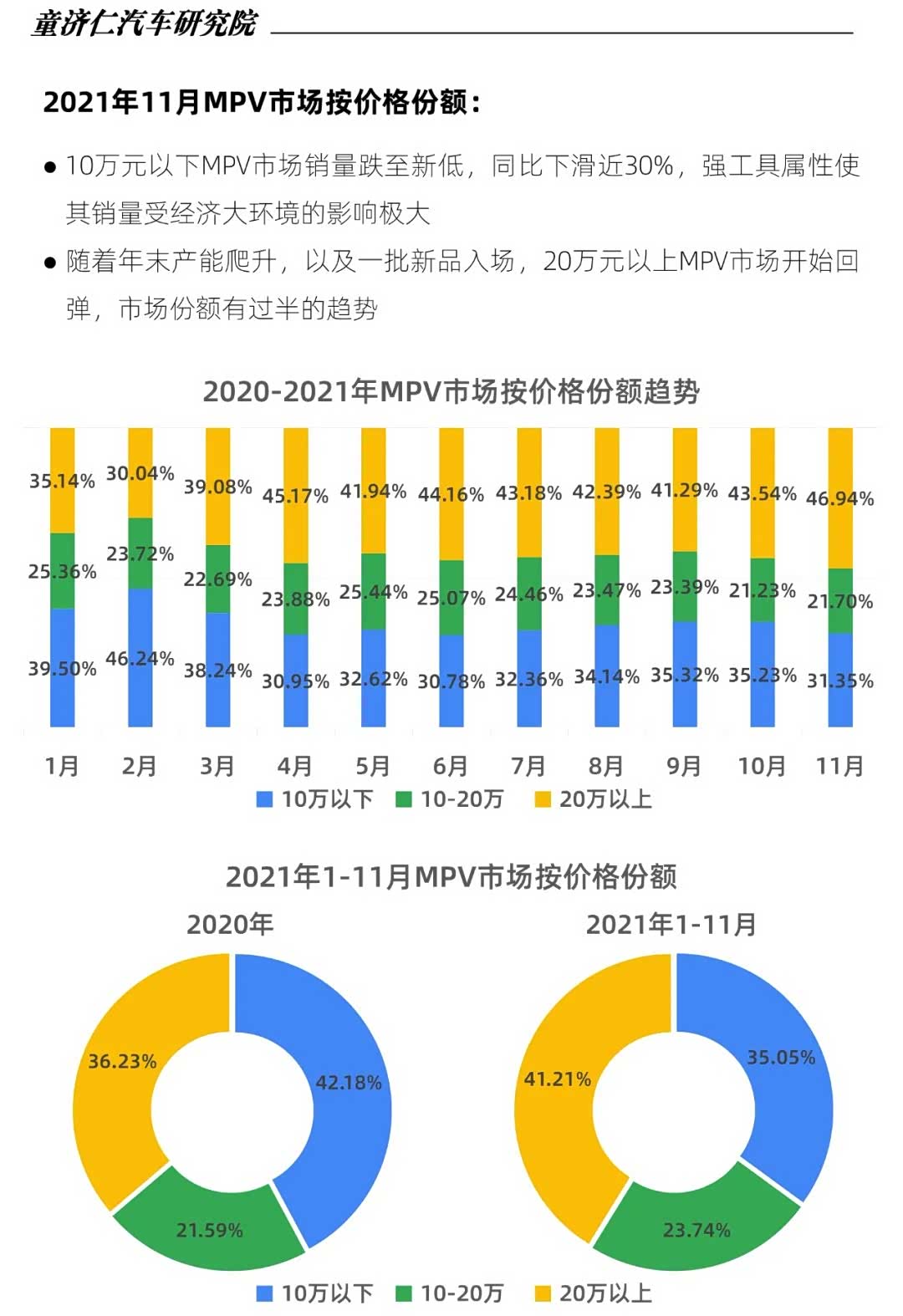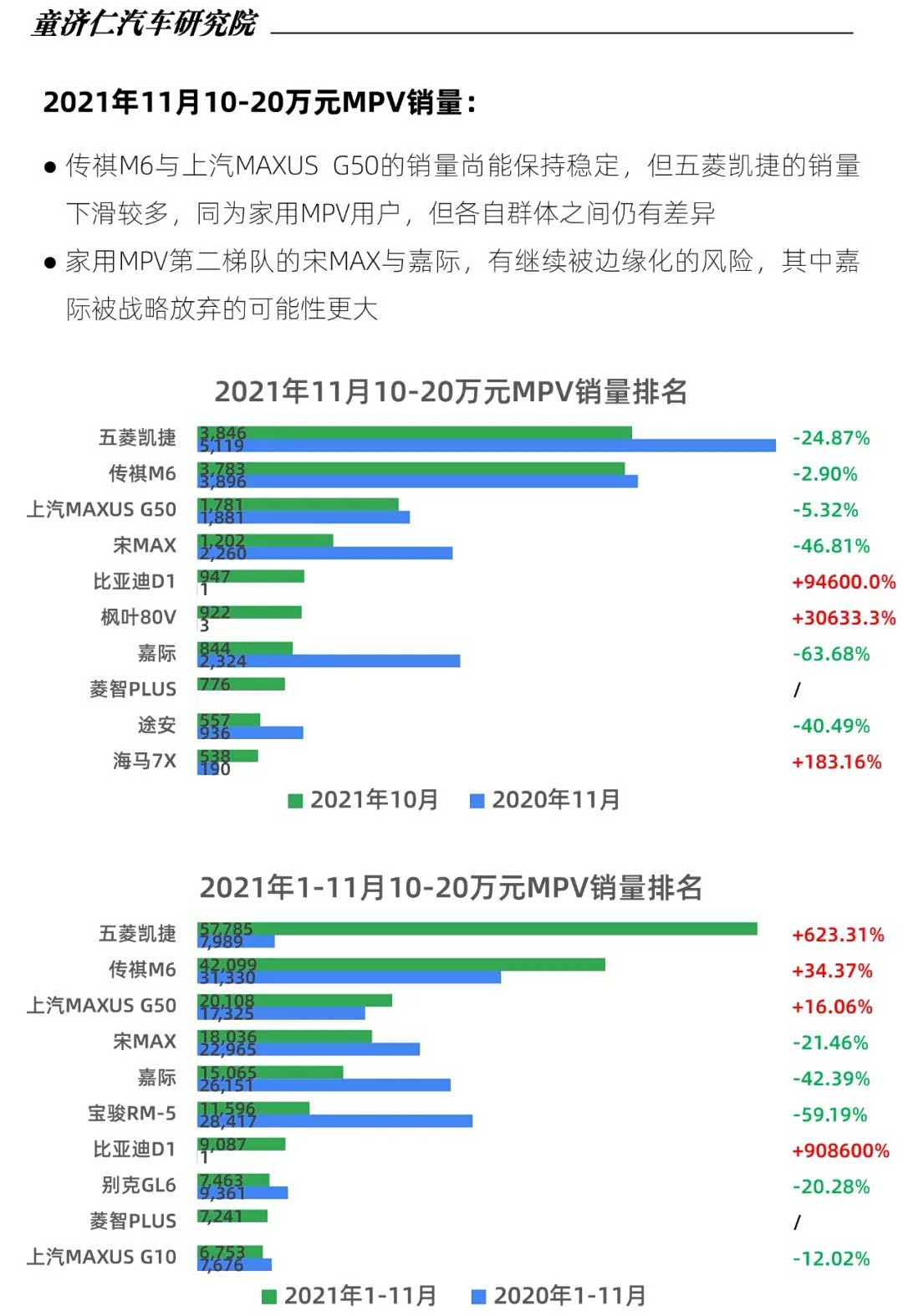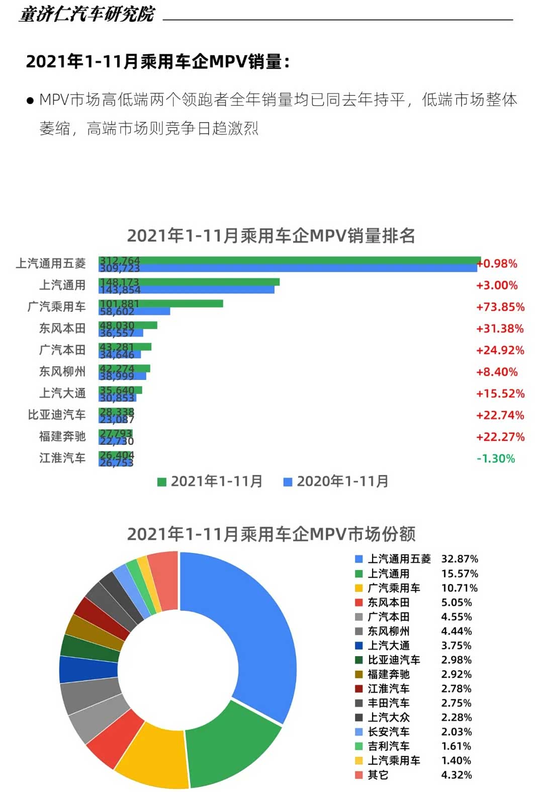 比如奥德赛和艾力绅改款之后,整体产品力针对家用人群的需求有较大提升,在30万元左右的家用市场有了更强的竞争力,而这个价格段恰好又是GL8陆上公务舱和ES陆尊之间最薄弱的市场。11月奥德赛与艾力绅销量总和已经达到了GL8约75%的水平。同时,赛那会在更高价位与GL8陆尊甚至艾维亚正面争夺高端家用消费者。