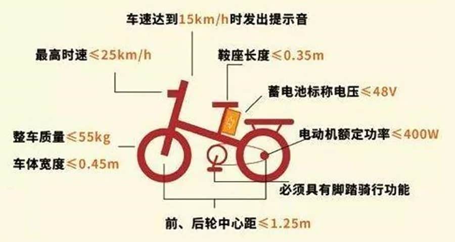 根据GB17761《电动自行车通用技术条件》的规定,只有满足了以下条件的电动车辆,才能被称为电动自行车,而达不到这些标准的电动车辆,被定义为非电动自行车,也就是电动摩托车,这就是新国标的大致规定。