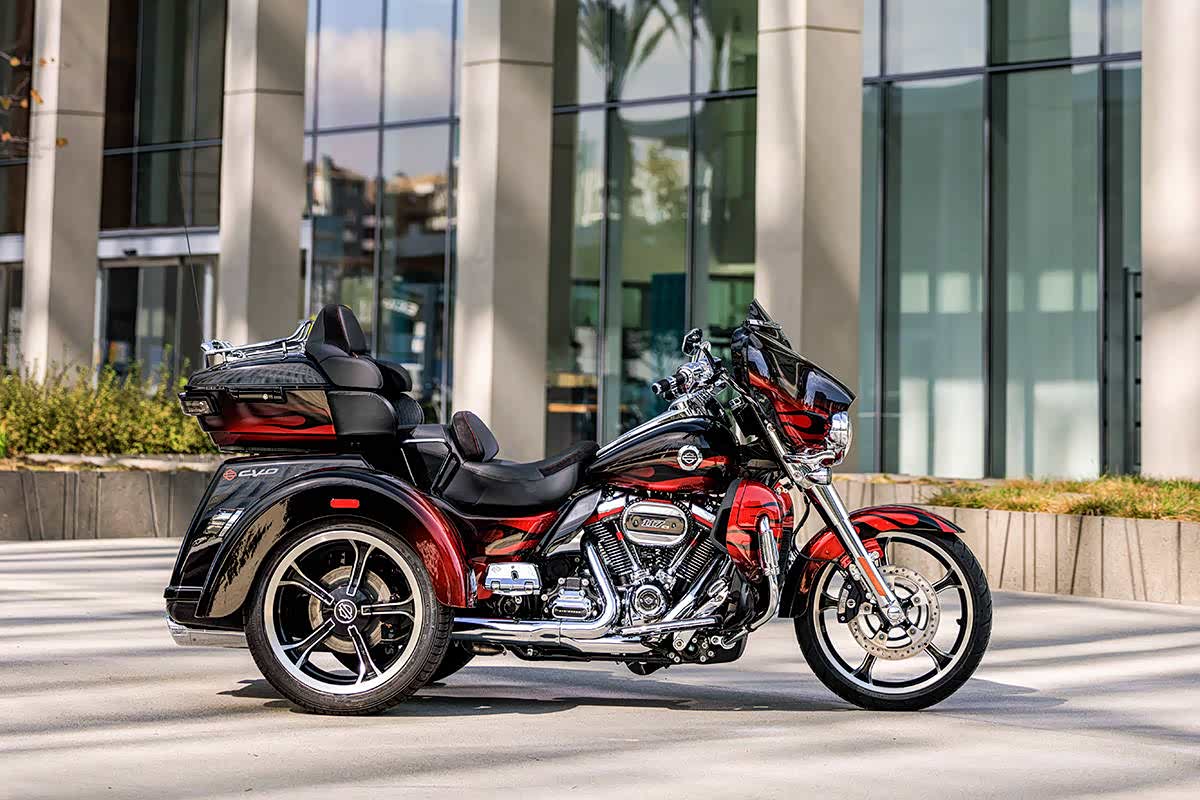 • CVO Tri Glide车型是一款三轮摩托车,具有独特的风格、强劲的性能、以及长途旅行舒适感。CVO Tri Glide车型具有优质的音响系统、豪华舒适的性能、以及令人震撼的对于饰面和车型细节的追求。