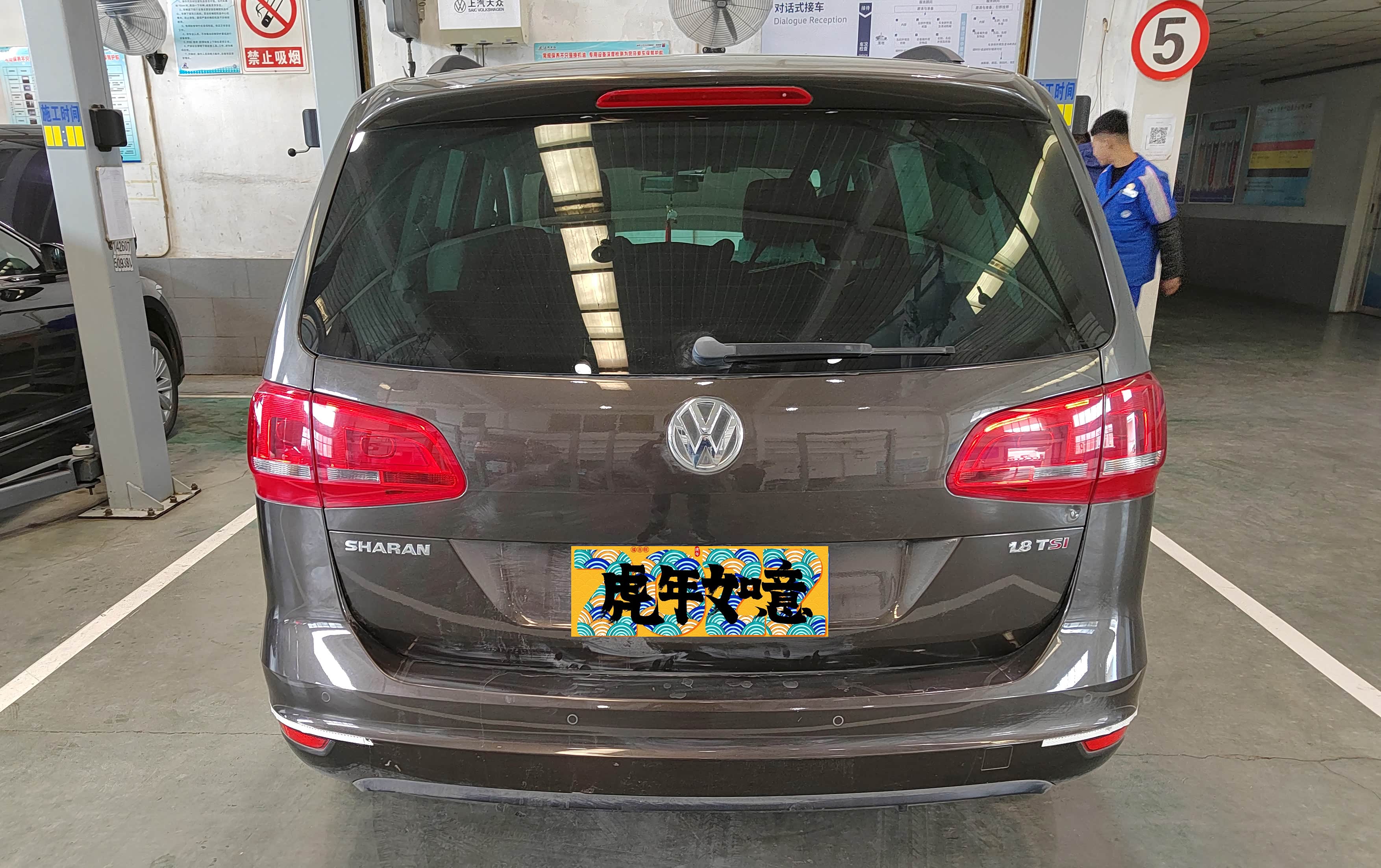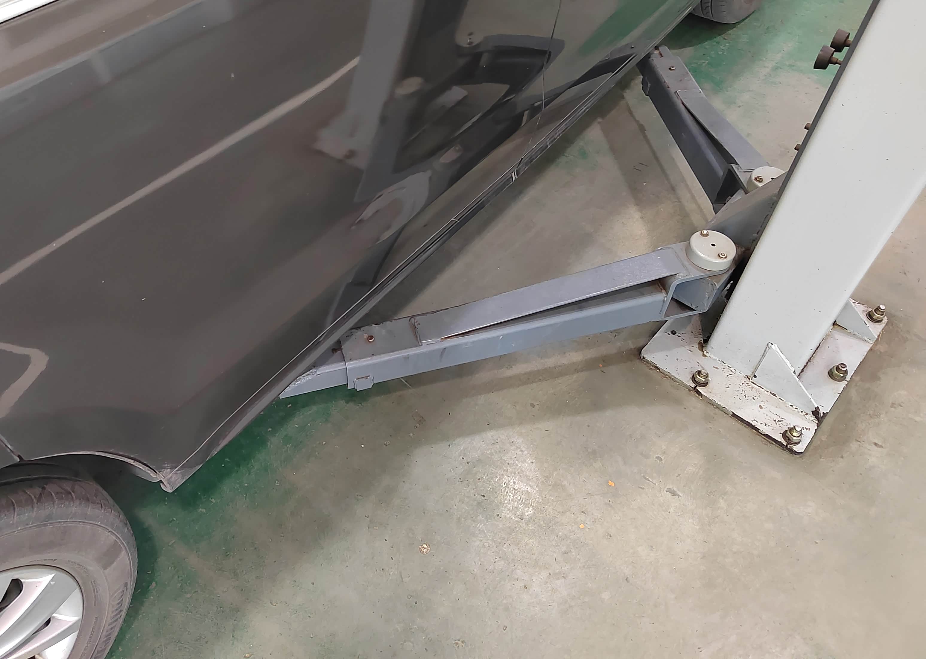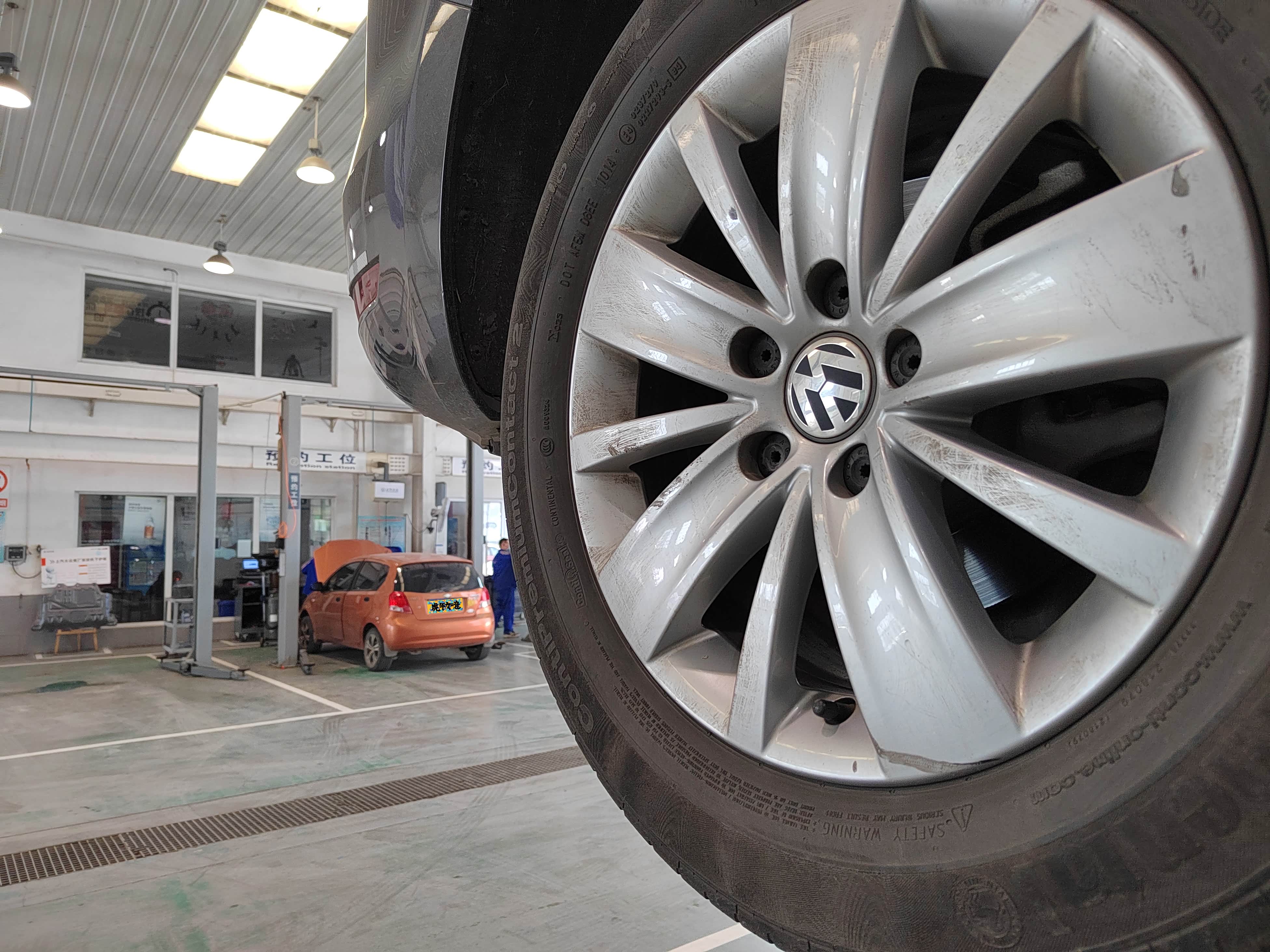 找了一家上汽大众4S店,这是把车开进售后开盖检查的状态,技师干活很讲究,举升机支腿已经准备好,此时我也心生疑问,换夏朗的发电机皮带需要升起来吗?