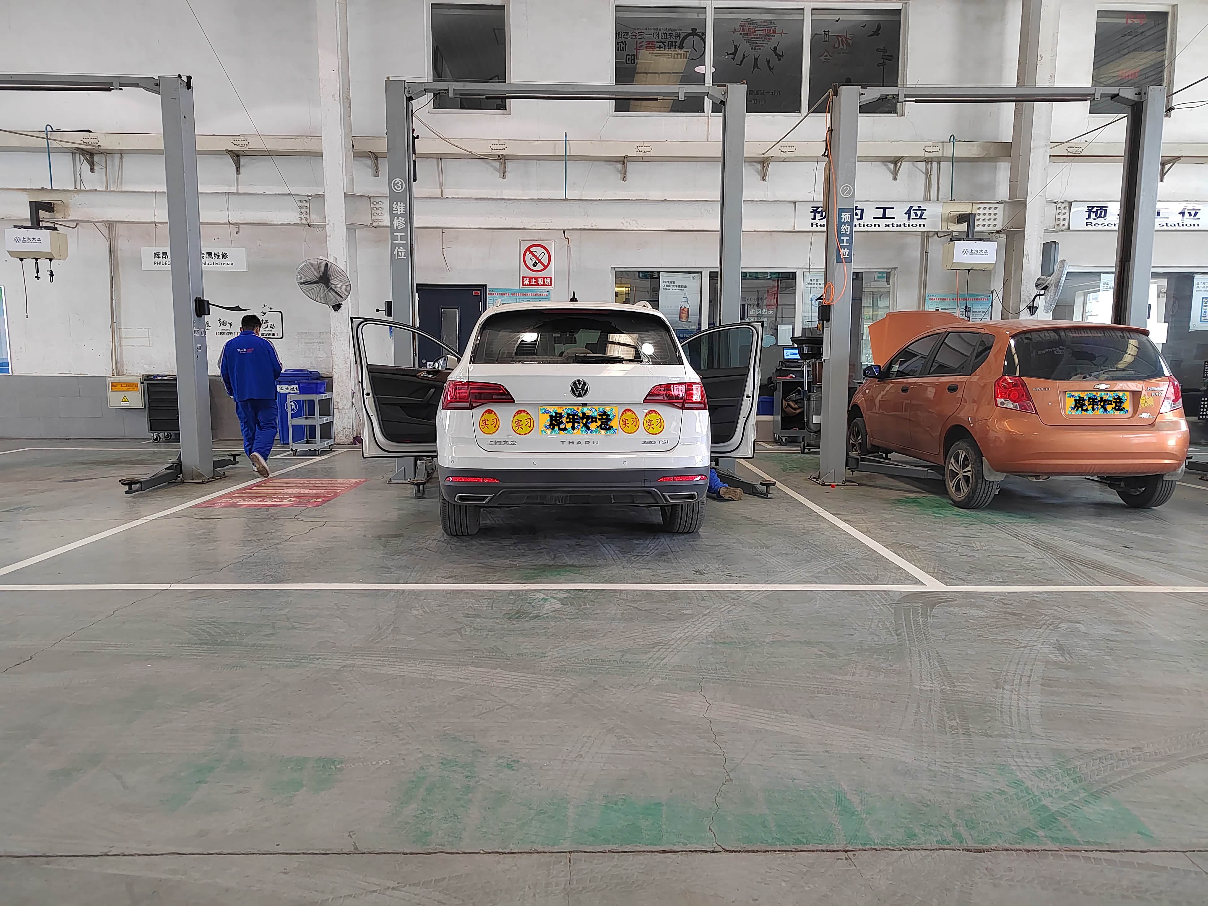 再次惊鸿一瞥,发现这里还有一台乐骋在保养,旁边的途岳实习态度也很认真。