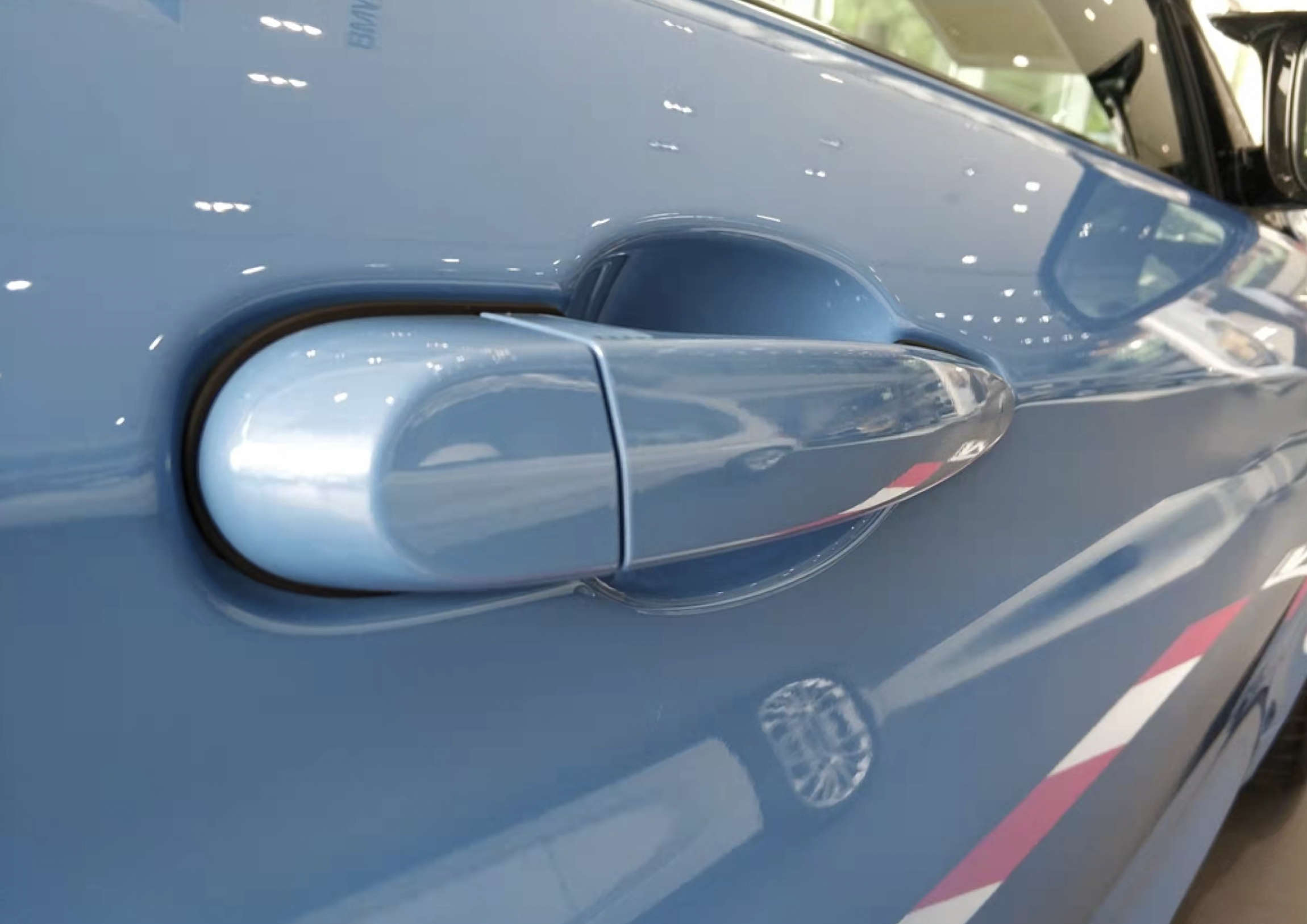 车身侧面,双门轿跑风格浓郁,侧翼子板的导风口带有M标识,流畅的线条配合贯穿式腰线梳理出“雕刻感”。无边框车门与车身贴合,保持齐平,以获得更好的空气动力表现。