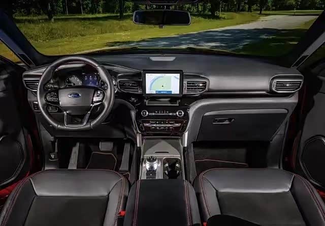 其余部分和现款探险者并无二异,座椅上的红色绗线设计,增添了其运动感,旋钮式的换挡按钮,也提升了其高级感。