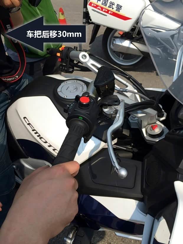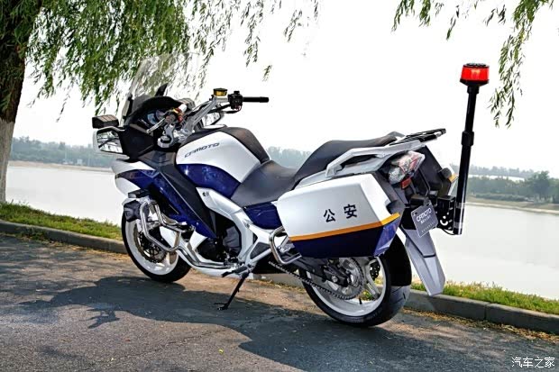 CF650J-2水箱两侧的护板做了重新设计,更符合空气动力学,视觉效果上也更加立体更富层次。车把后移30mm,使骑乘的姿势更加舒适,车辆采用双座设计,增加了脚踏、后扶手,同时对车辆后部边箱前端位置做了重新设计,以保证后座乘客骑乘的舒适性。前后的护杠在倒车的时候能够比较好的保护车辆和边箱,相信在民用版上也会继续出现。