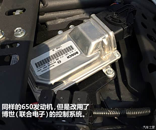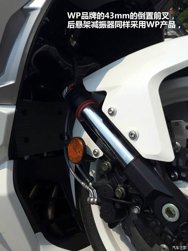 在底盘方面,CF650J-2和国宾车都使用了WP品牌的43mm的倒置前叉,而且双向(压缩/回弹)可调,后悬架减振器同样采用WP的产品,而650TR使用的是KYB的正置前叉。国宾车和警用车的水箱也是WP品牌的产品。