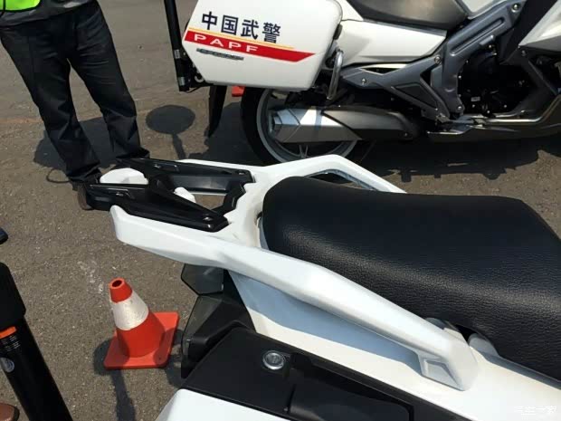 『警用版本采用双座,配备后扶手和脚踏,同时对车辆后部边箱前端位置做了重新设计』