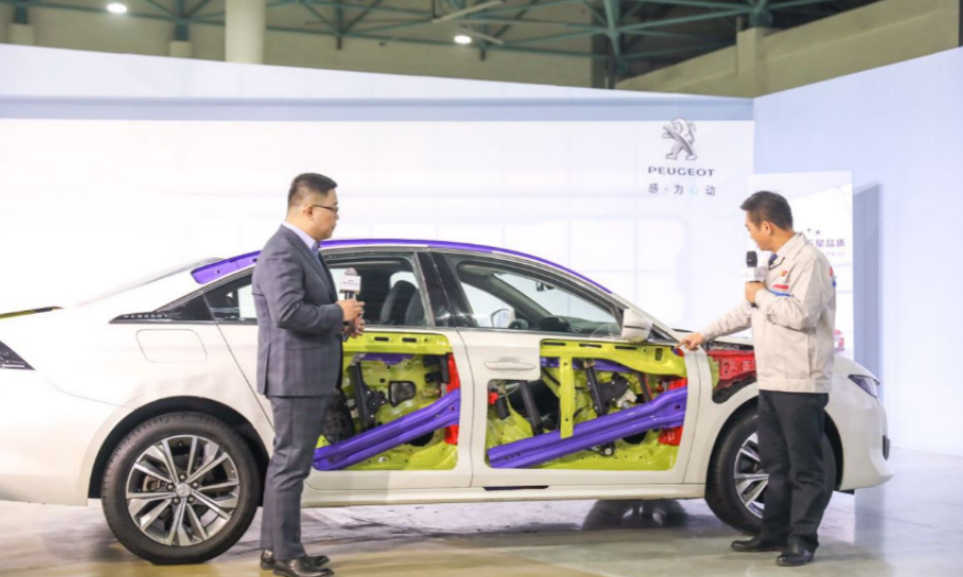 (张金换教授[右1]高度评价东风标致508L安全品质)