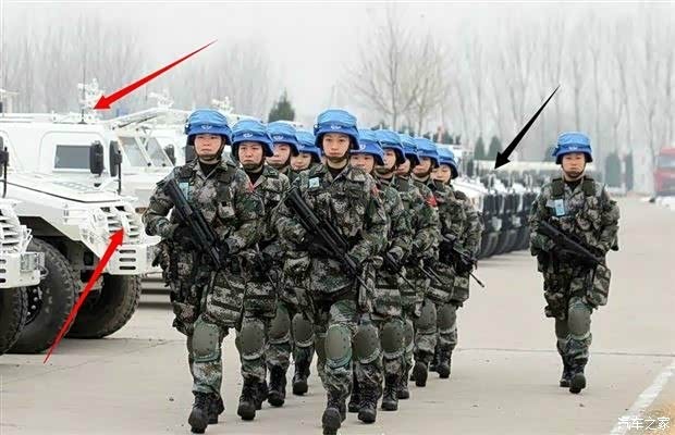 2014年12月22日,中国首支维和步兵部队亮相,该部队将派往南苏丹,相比以往派出的工兵、军医、警察等辅助兵种,此次派出的武装部队意义深远。从放出的官图(上图)研判,这支混编部队装备了1代猛士指挥车(黑色箭头所指)以及1代猛士装甲车(红色箭头所指)。