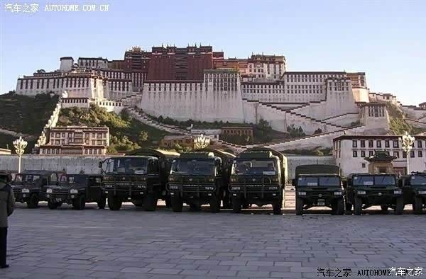1代猛士与EQ2102载具以及“合汽”版一代勇士完成全军标准军车高原测试后,在拉萨布达拉宫广场前合影。