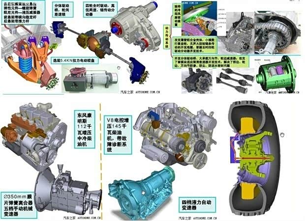 “二汽”在对猛士的国产化中,坚持先易后难,重点发展的研发原则,首当其冲的解决动力总成、传动系统以及实时四驱系统的国产化问题。