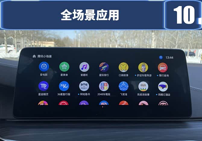 在应用商店方面,系统的个性化菜单栏提供了一个“腾讯小场景”,内部涵盖了非常丰富的各种应用App,光是这辆测试车就已经下载了爱电影、爱趣听、星美食等20多个应用,用户还可以根据当下的需求,随时去应用商店去下载需要的App。功能丰富,形式多样,有着很高的可玩性,总体给出10分的好成绩。