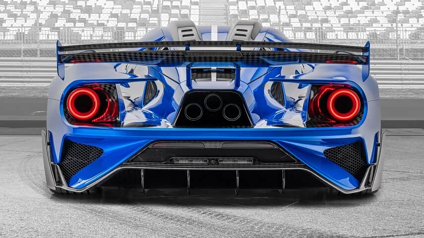 MANSORY为这款福特GT选用了“Bleurion Race”车身漆面,同时工程师还对前灯组进行了改造,令其看上去异常凶悍。根据MANSORY官方表示,这款“Le MANSORY”福特GT超跑全球范围配额仅有三台。因为数量相当稀少,你能见到它的几率微乎其微。