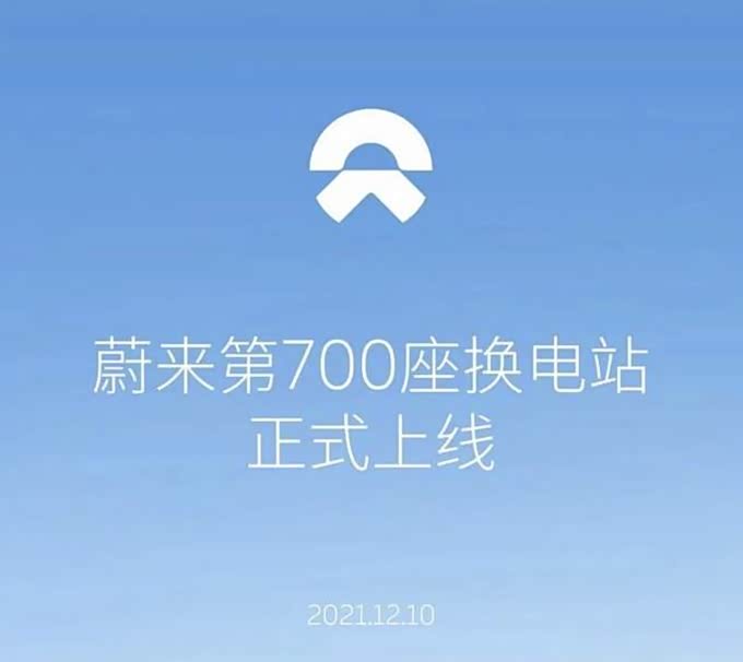 截至2021年12月10日,蔚来官方宣布第700座换电站正式上线,建设数量同比去年提升近10倍,提前完成2021年度目标。