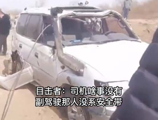 有媒体对目击者进行了采访,目击者表示:司机啥事没有,副驾驶(死者)那人没系安全带。通过网友拍摄到的照片可以看到,事故车辆车前玻璃和副驾驶玻璃破碎,车顶有明显变形。