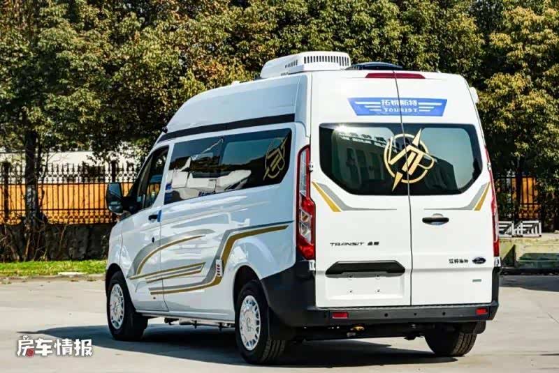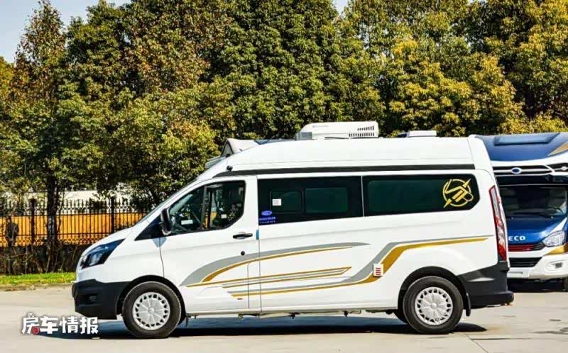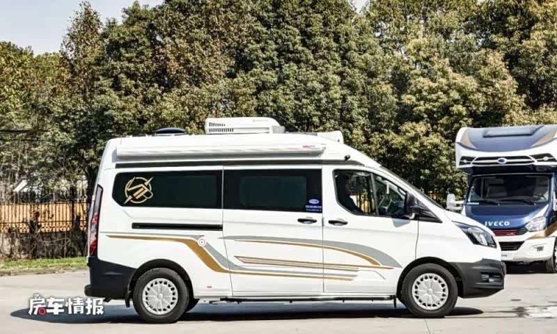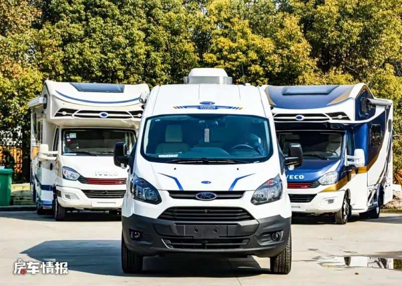 这两款车型全部是来自于拓锐斯特的福特B型房车,因为外观设计和底盘动力是一样的,所以在这里就简单的和大家介绍一下,两辆车都采用了标准的自行式B型房车的造型,搭配家族式的拉花设计,侧面配有基础的遮阳棚,并提供后期可以为房车进行补给的水电接驳口。