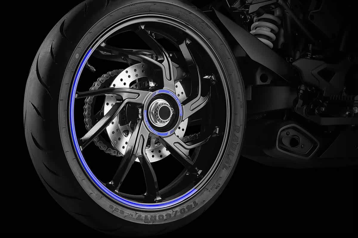 同时后轮单摇臂不仅看起来更为帅气,在结构用料上也进一步提升,弯曲刚度提高89%,扭转刚度提高97%,实现了“好看中用”的完美表现。轮胎也升级成了CST最新的半热熔轮胎,原厂省去了后期更换轮胎的麻烦,满足了绝大部分消费者对于操控的需求。