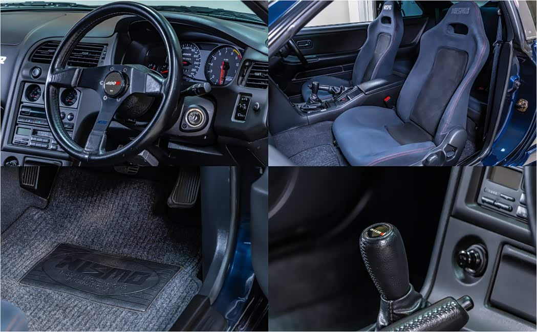 内装也处于极佳的状态,它保留了所有原始的NISMO部件,包括方向盘、排档头、仪表板、地毯和内部许多写着400R的装饰件。NISMO跑车座椅仍然提供充足的支撑,并呈现出些许的淡蓝色,相当有质感。