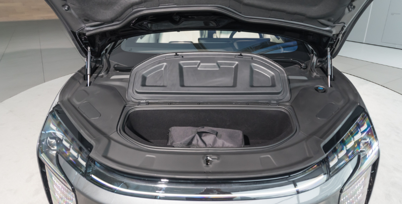 新车的尾部造型同样宽大低矮,大角度的尾窗设计进一步减小了尾窗的比例,视觉效果更加运动时尚,尾灯和头灯一样带有智能交互灯组,功能表现也与头灯完全一致,可以显示多种图案。同时灯组内部带有镀铬装饰,细节设计足够到位。